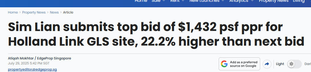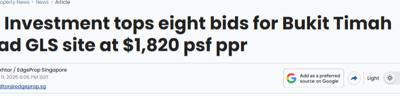 Bukit Timah GLSTop bid: ~$1,820 psf ppr